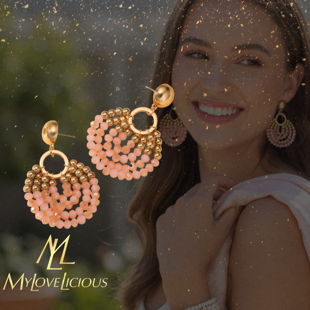 💖 Ronde oorbellen van hoogwaardig stainless steel, met de hand afgewerkt met zalmroze crystal kralen en subtiele gouden accenten.