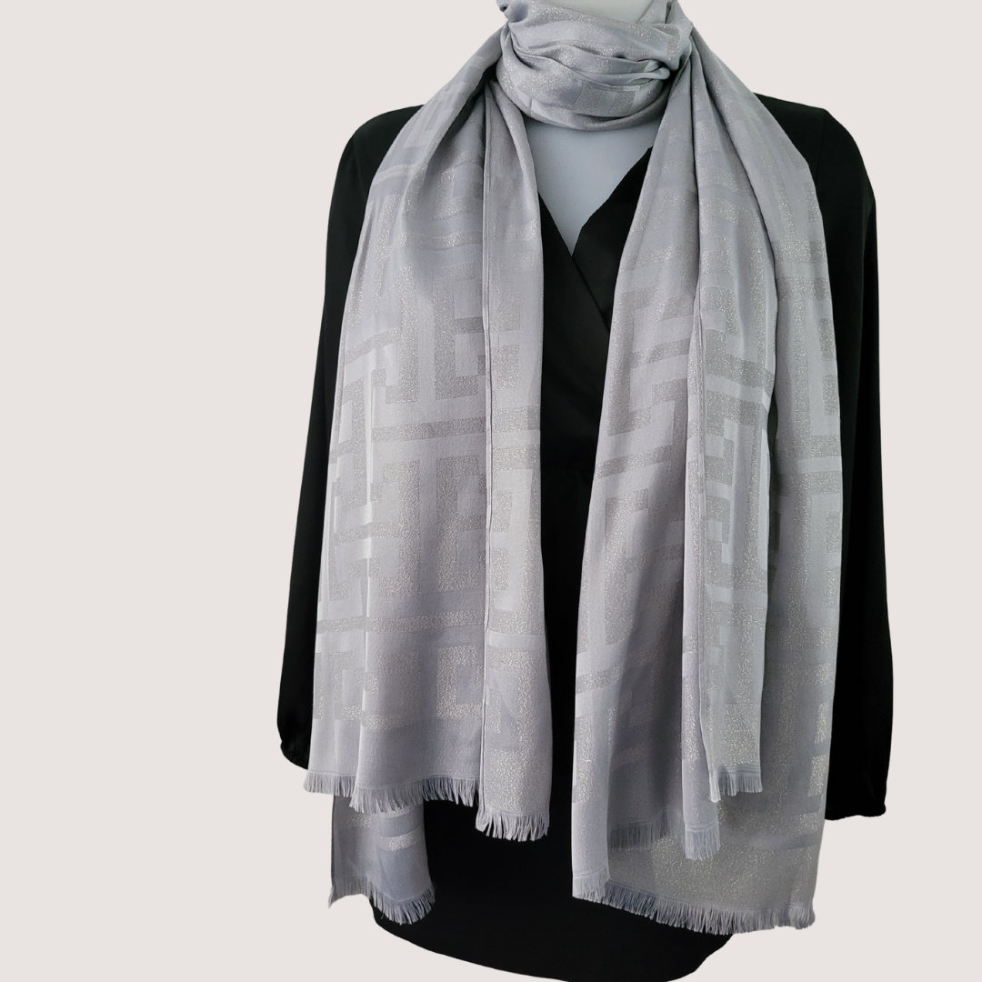 Zijdezachte sjaal van 100% glanzend polyester, met een luxueuze uitstraling en een fluweelzacht gevoel op de huid. Perfect om elke outfit een geraffineerde finishing touch te geven.