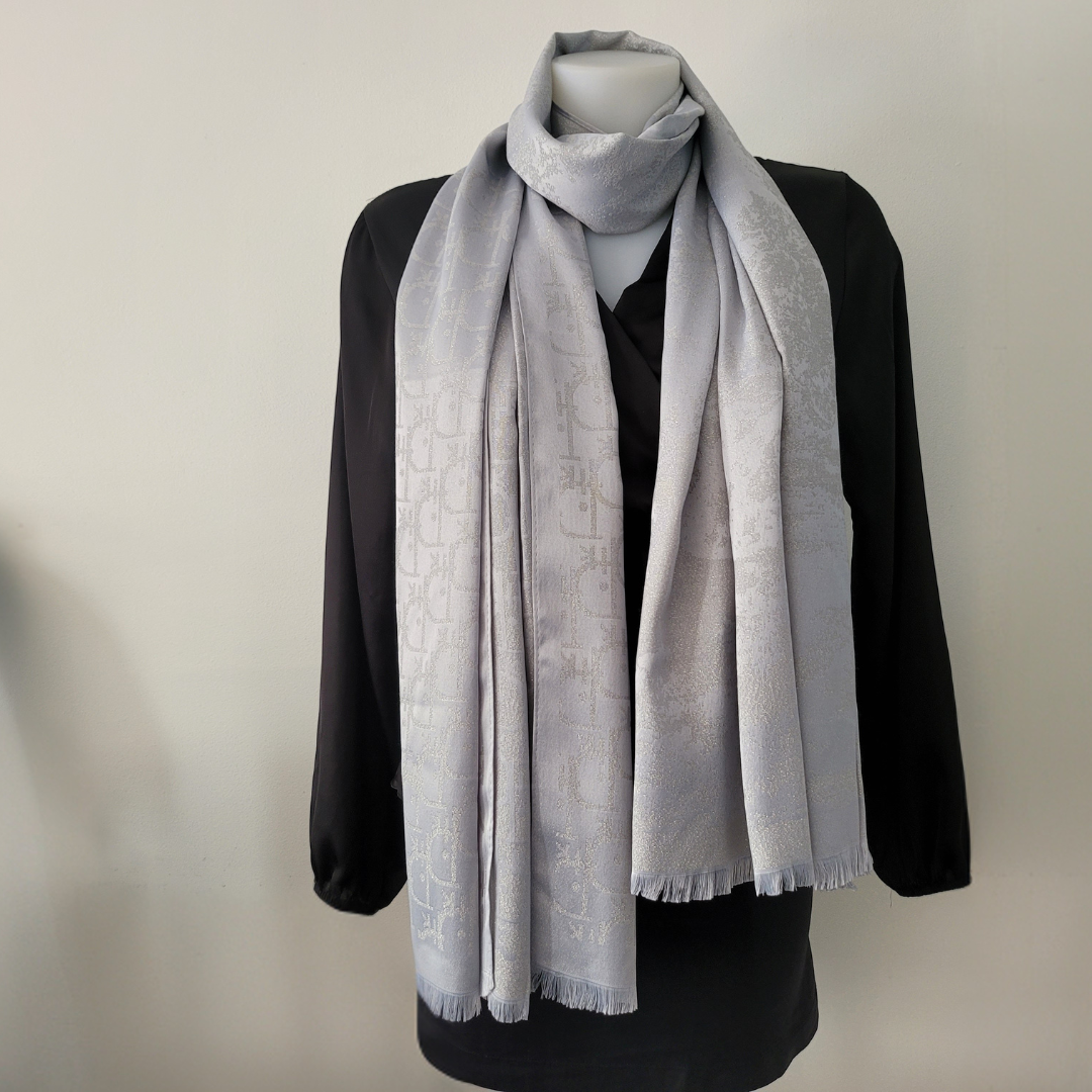 Zijdezachte sjaal van 100% glanzend polyester in een stijlvolle zilvergrijze tint. De sjaal voelt heerlijk zacht aan en geeft elke look een vleugje luxe.